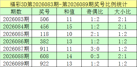 福彩3D第2026089期回顾:奖号为922,奖号奇偶比为1:2,大小比为1:2,和值为13,类型为组三。